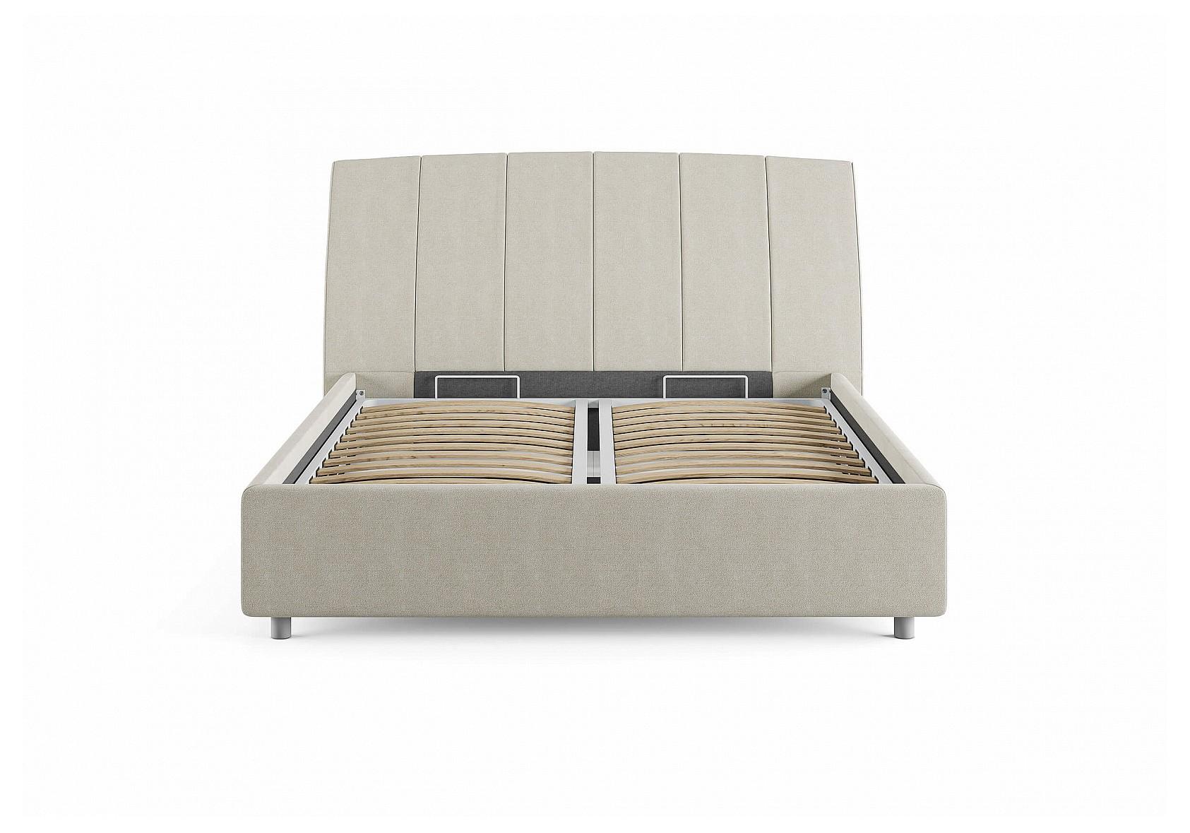 Стильная интерьерная кровать с изогнутым изголовьем и широкими царгами. Модель изготовлена из ДСП. В комплект кровати входит кроватное основание. Каркас основания выполнен из металла, ламели - из берёзы.