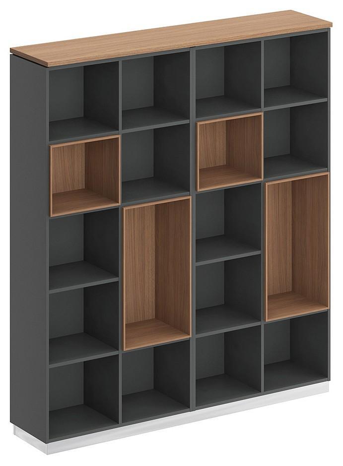Стеллаж является стенкой из двух стеллажей под общим топом. Декоративный зазор между топом и боковыми стенками стеллажей.