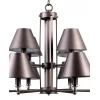 БАЙС. Основа люстры и плафонов - металл серого цвета с фактурной поверхностью. Геометрическая строгость в каждой детали. Центр люстры-металлические пластины, собранные в каркас, удерживающие лопасти основания. На лопастях уверенно расположились плафоны конусовидной формы.