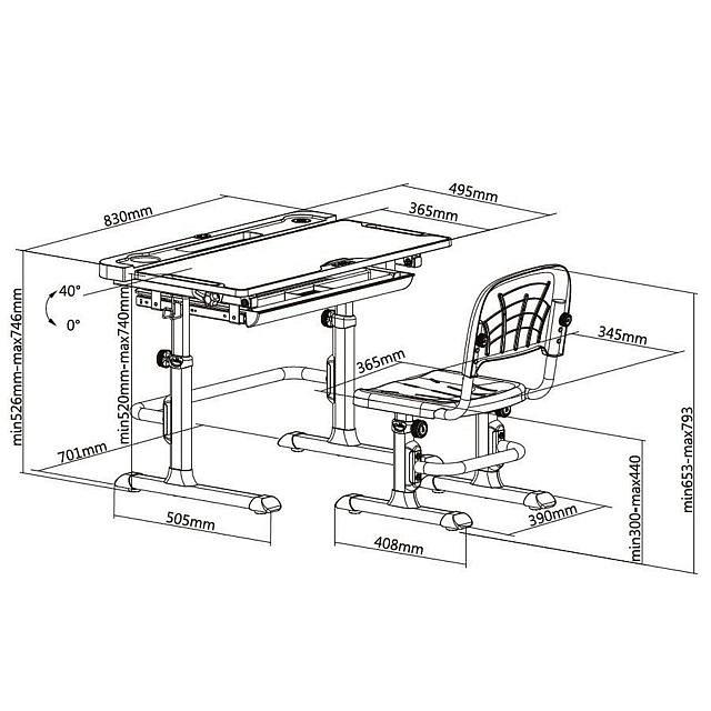 Поверхность учебного стола можно наклонять до 40 ° для удобного письма, чтения и рисования.