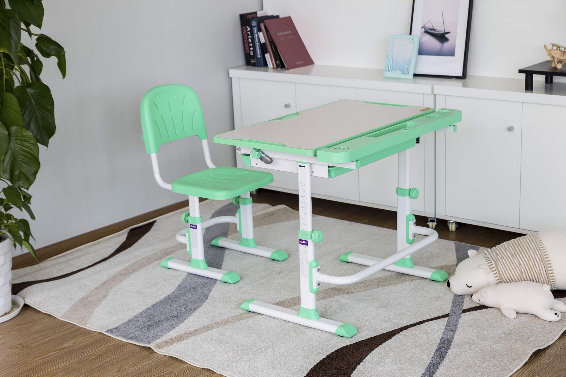Стол и стул могут быть легко отрегулированы по высоте, что позволяет оптимально адаптировать его под соответствующий рост ребенка. Механизм регулировки высоты стола: ручной.