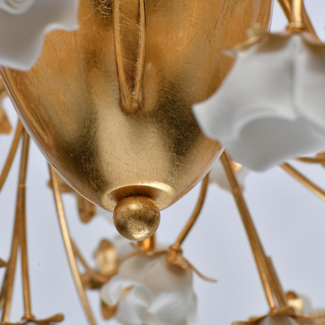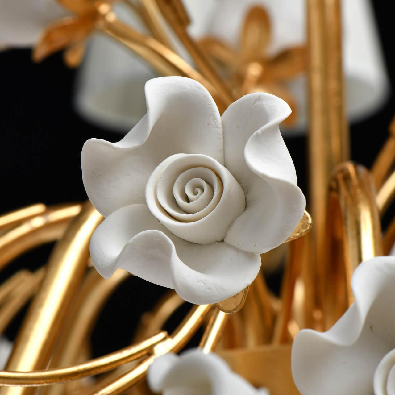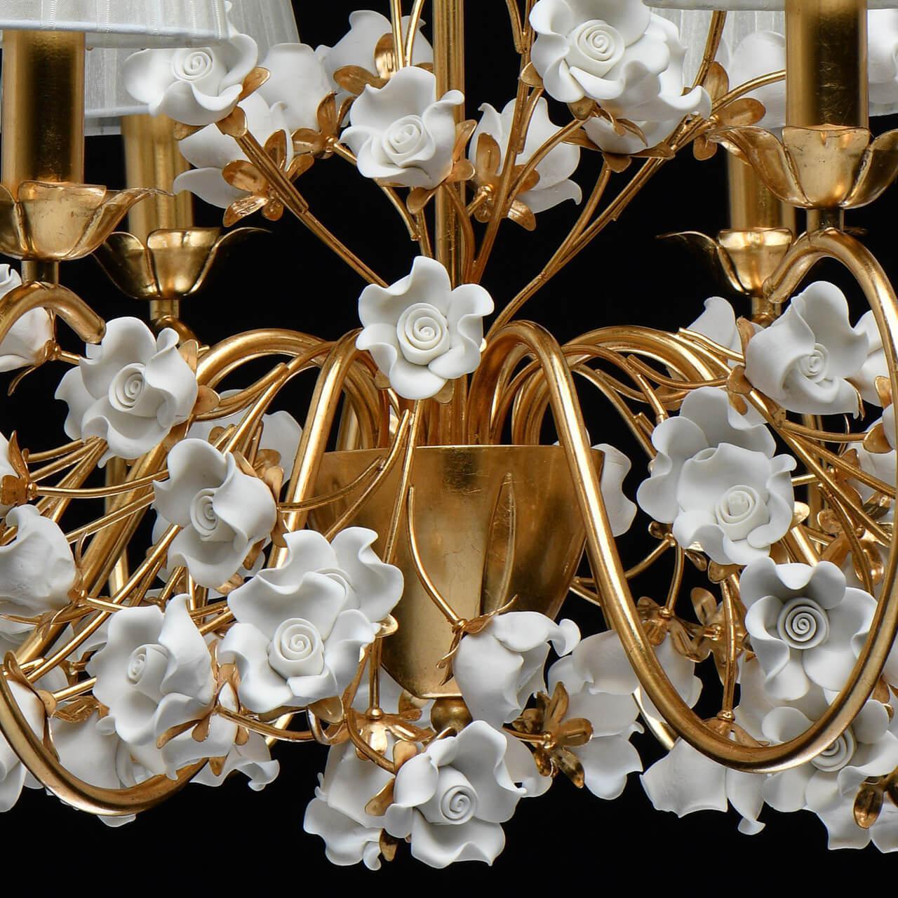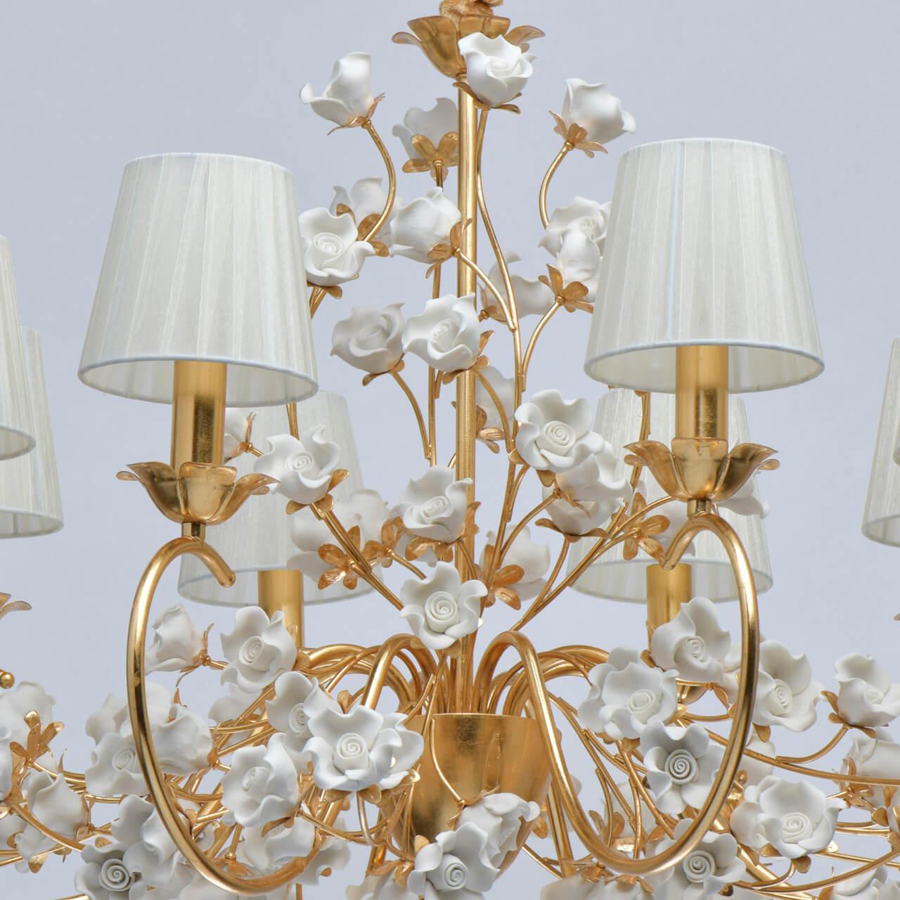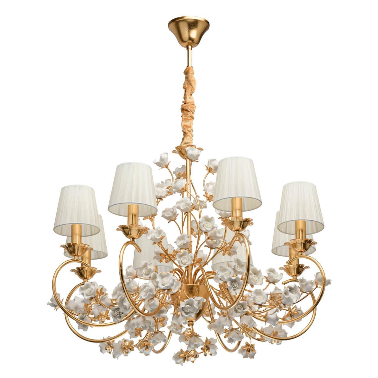 Выдающаяся модель 282012008 от немецкой компании Chiaro относится к коллекции Сицилия и отлично подойдет для установки на потолок в гостиной, оформленной в стиле прованс. Подвесная люстра Chiaro Сицилия 282012008 с конусными плафонами осветит помещение площадью 16 кв. м. Производитель Chiaro рекомендует использовать для устройства лампы накаливания с цоколем E14 и мощностью 40 W. Прибор произведен с использованием материалов: керамика, металл и органза и может использоваться для натяжного потолка. Основным цветом товара является белый и золотой. Торопитесь сделать заказ в интернет-магазине SvetONe.