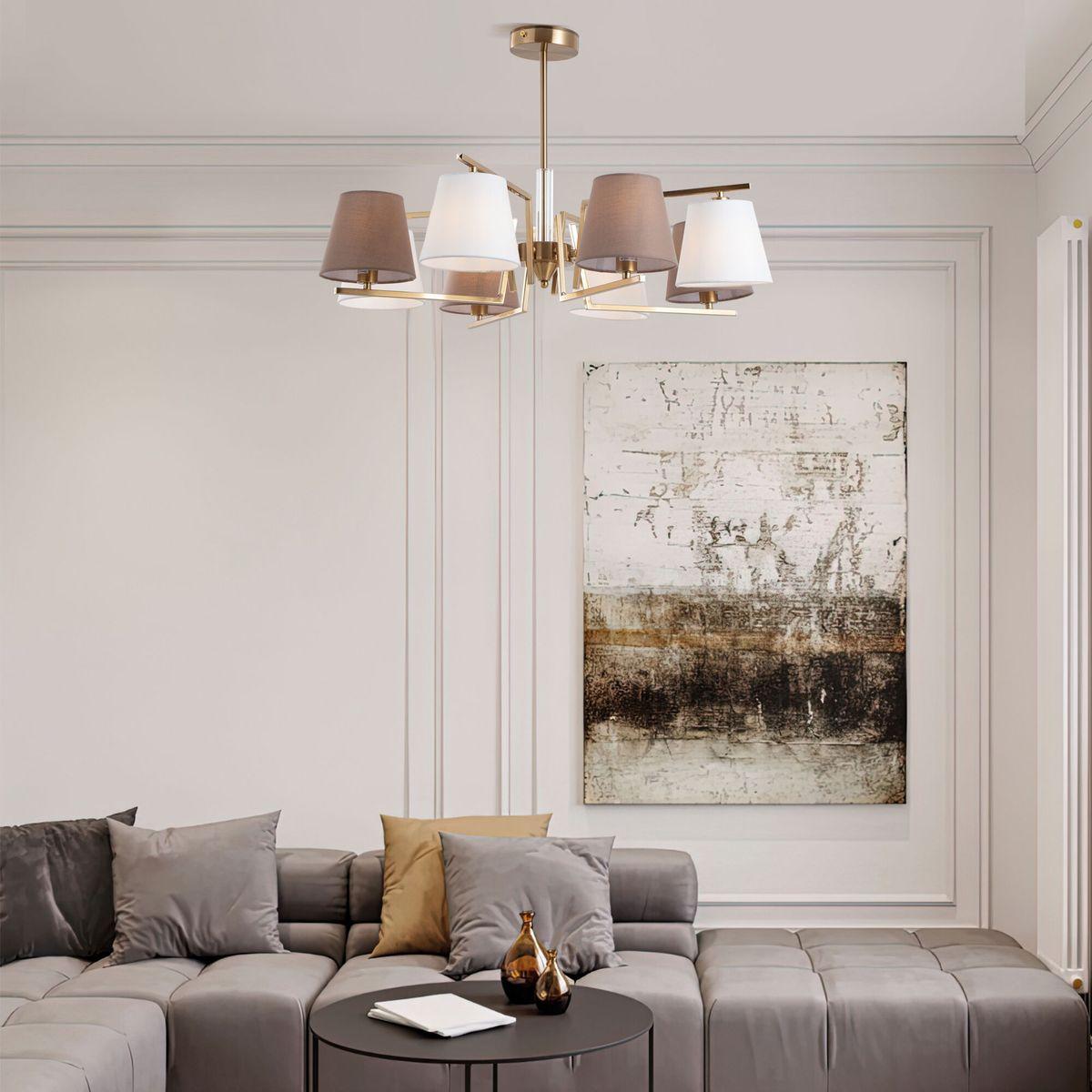 Поразительная модель 60149/8 латунь от российской компании Eurosvet относится к коллекции Ozark и отлично подойдет для установки на потолок в гостиной, оформленной в современном стиле. Потолочная люстра Eurosvet Ozark 60149/8 латунь с плафонами-конусами осветит помещение площадью 14 кв. м. Производитель Eurosvet рекомендует использовать для устройства лампы накаливания с цоколем E14 и мощностью 40 W. Прибор произведен с использованием материалов: текстиль, металл и ткань и может использоваться для натяжного потолка. Основным цветом товара является латунный. Торопитесь сделать заказ в интернет-магазине SvetONe.
