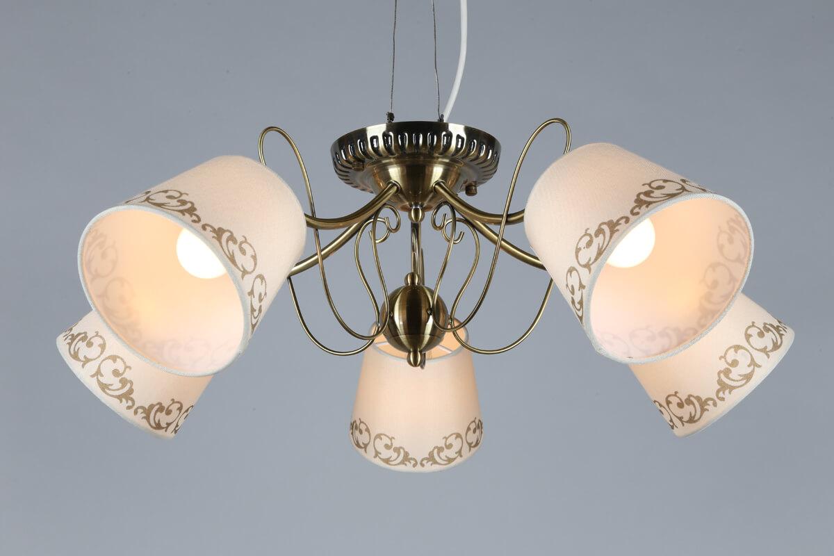 Выдающаяся модель OML-55107-05 от китайской компании Omnilux относится к коллекции Tarvo и отлично подойдет для установки на низкий потолок спальни, оформленной в стиле модерн. Потолочная люстра Omnilux Tarvo OML-55107-05 с конусными плафонами осветит помещение площадью 12 кв. м. Производитель Omnilux рекомендует использовать для устройства лампы накаливания с цоколем E14 и мощностью 40 W. Прибор произведен с использованием материалов: стекло и металл и может использоваться для натяжного потолка. Основным цветом товара является белый и бронзовый. Потолочная люстра OML-55107-05 продается по цене 4250 руб. Торопитесь сделать заказ в интернет-магазине SvetONe.