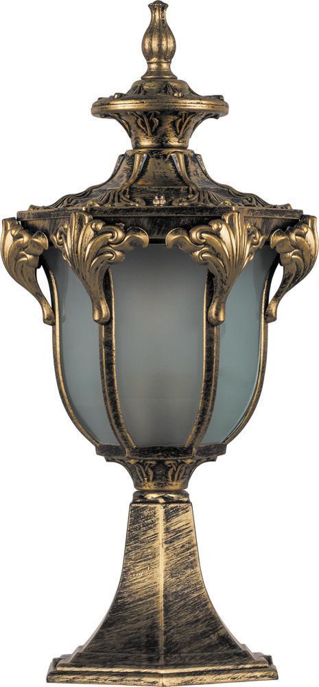 Светильник садово-парковый, серии «Флоренция» (НТУ) FERON PL4053 1*60W, E27, 230V, IP44, цвет черное золото, 6-и гранник, на постамент, 215*245*520мм