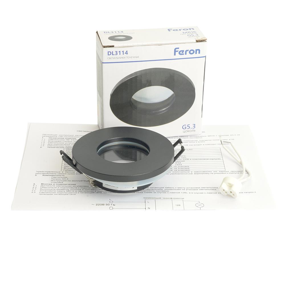 Светильник встраиваемый Feron DL3114 потолочный MR16 G5.3 черный 51367