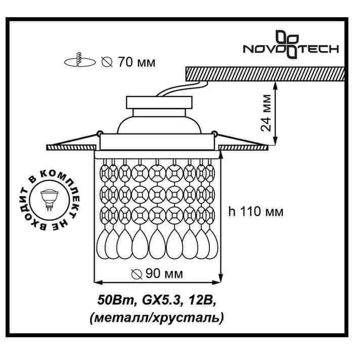 Невероятная модель 369779 от венгерской компании Novotech относится к коллекции Spot и отлично подойдет для установки на потолок спальни, оформленной в стиле арт-деко. Встраиваемый светильник Novotech Jinni 369779 с круглыми плафонами осветит помещение площадью 2.8 кв. м. Производитель Novotech рекомендует использовать для устройства галогеновые лампы с цоколем GX5.3 и мощностью 50 W. Прибор произведен с использованием материалов: хрусталь и металл и может использоваться для натяжного потолка. Основным цветом товара является хромовый. Торопитесь сделать заказ в интернет-магазине SvetONe.