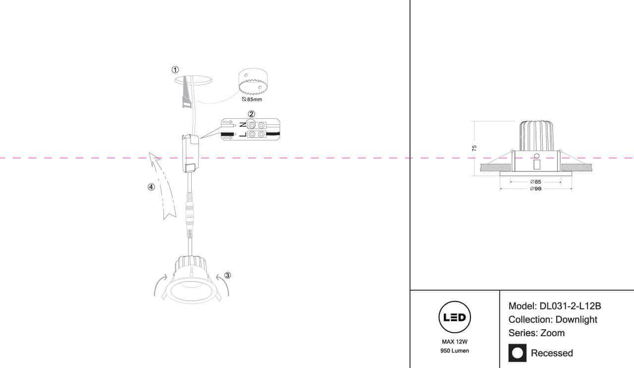 Встраиваемый светодиодный светильник Maytoni Zoom DL031-2-L12B
